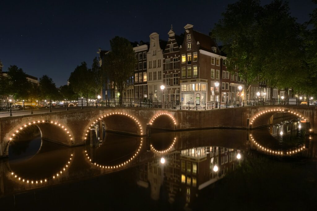 These photos also demonstrate how the light and seasons change the mood of the canal throughout the year. You see the sun illuminating the ornate facade of the “House with the Heads” and the romantic glow of bridge lights on the dark water at night. Whether you want to find the spot where the canal famously transforms into an ice rink in winter or simply admire the historic houseboats, this collection highlights why the Keizersgracht remains the city’s most impressive promenade.