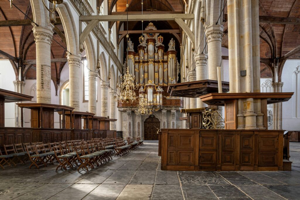Dominating the west wall, this massive oak instrument from 1724 is famous for its deep, resonant sound. It replaced an earlier organ played by the legendary composer Jan Pieterszoon Sweelinck, whose own grave is hidden elsewhere in the church floor.